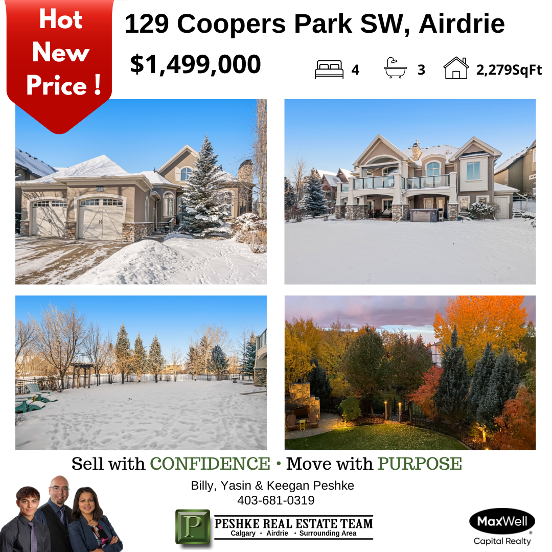 !PRICE DECREASE! 129 Coopers Park SW, Airdrie https://www.peshketeam.com/.../a2192923-129-coopers-park.../  https://youriguide.com/129_coopers_park_sw_airdrie_ab $1,499,000 MLS A2192923 1 Of the Largest Lots In Coopers Park w/ Private Backyard Almost 2300 SqFt Bungalow w/In-Floor Heating 4 Bedrooms 3 Full Bathrooms Oversized Tandem Garage Call/message us for more details: 403-681-0319 This stunning custom-built McKee Homes walkout bungalow in Coopers Crossing sits on one of the area's largest lots, backing onto greenspace and pathways. The home showcases a triple heated garage, in-floor heating, a gourmet kitchen with high-end appliances,…